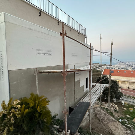 Metal Structure closed in with cement board and drywall and insulate panel roof